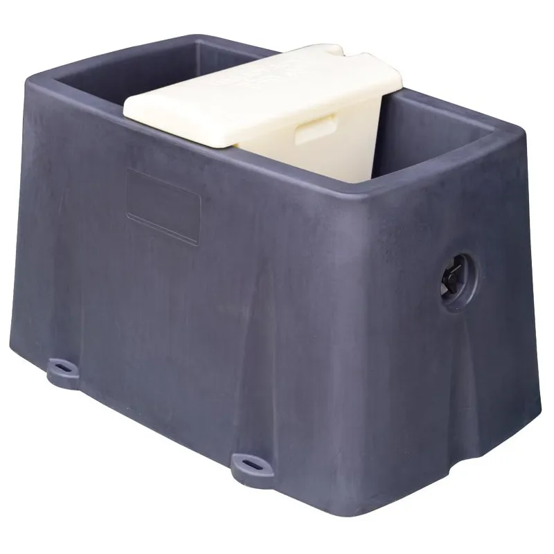 Leicht schräge einzelne Schale, um Entleerung und Reinigung zu vereinfachen. Die Schale ist durch das doppelwandige rotationsgeformte Schutzgehäuse des Schwimmerventiles in 2 Räumen aufgeteilt.