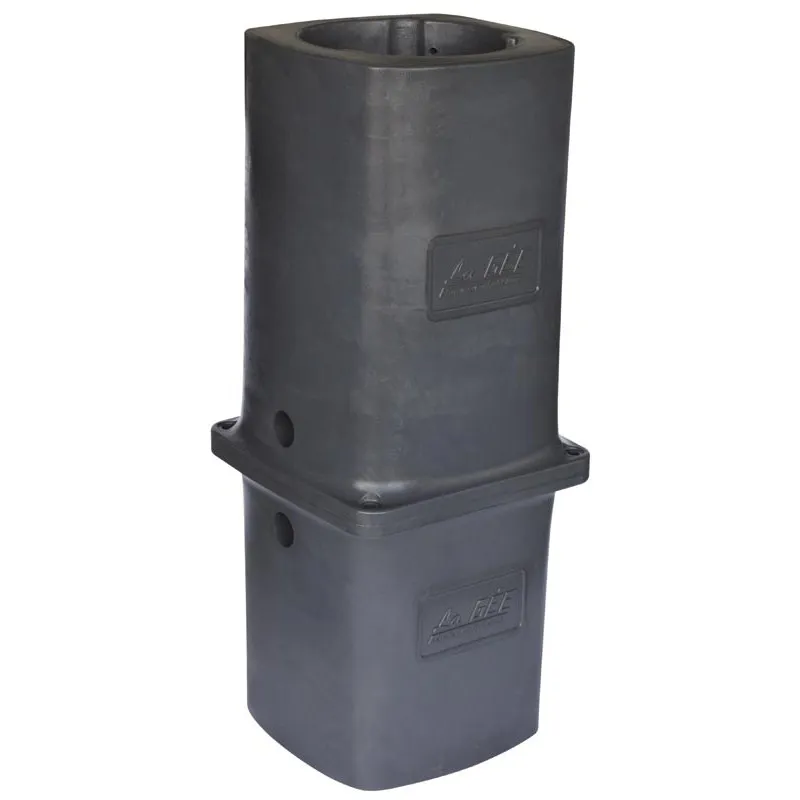 Mit Polyurethanschaumstoff isoliert, schützt naturgemäß die Wasserzufuhr vor Frost. 4 serienmäßige Bohrungen zur Bodenbefestigung und rechts und links Durchgang für den Wasserauslaufschlauch der POLYSPRING Tränke (die nicht benutzte Seite wird mit einem weichen Gummistopfen geschlossen). Die Befestigung im Boden ermöglicht somit die Erhaltung der natürlichen Erdwärme.