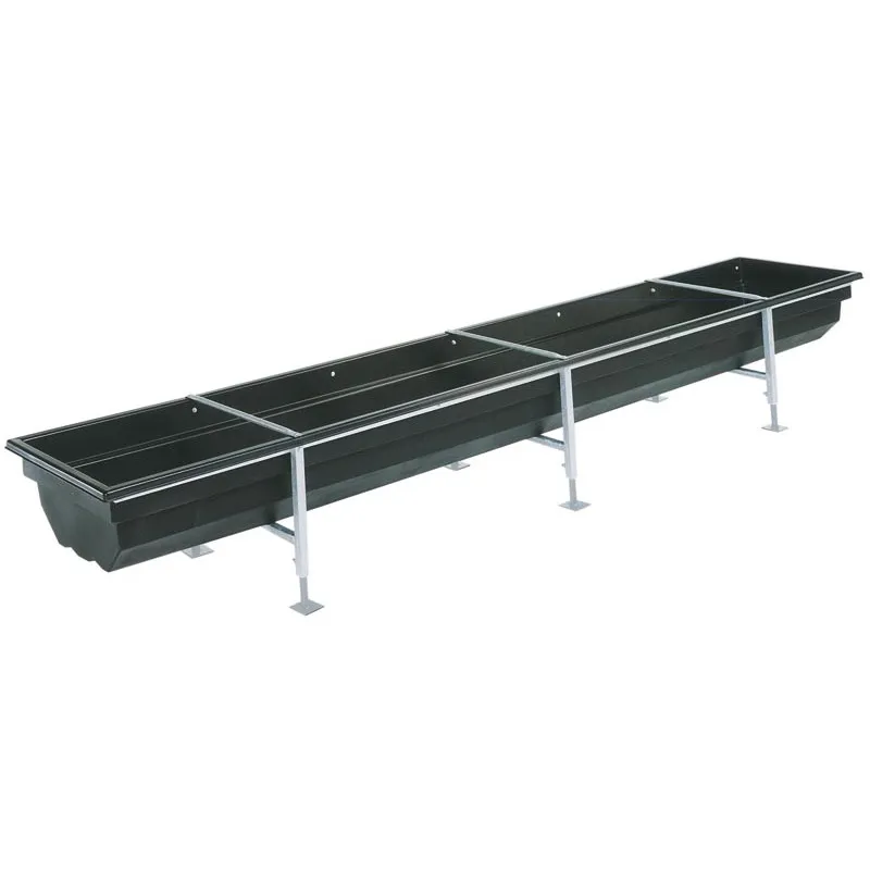 Die geraden Weidetröge sind so konzipiert, dass viele Tiere daran fressen können.