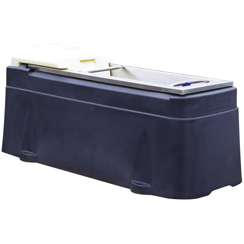 Tränke mit Schwimmerventil, in 3 heizbaren oder nicht heizbaren Ausführungen bzw. Längen erhältlich. Sockel aus rotationsgeformtem Kunststoff, in dem eine Edelstahlwanne sich befindet.