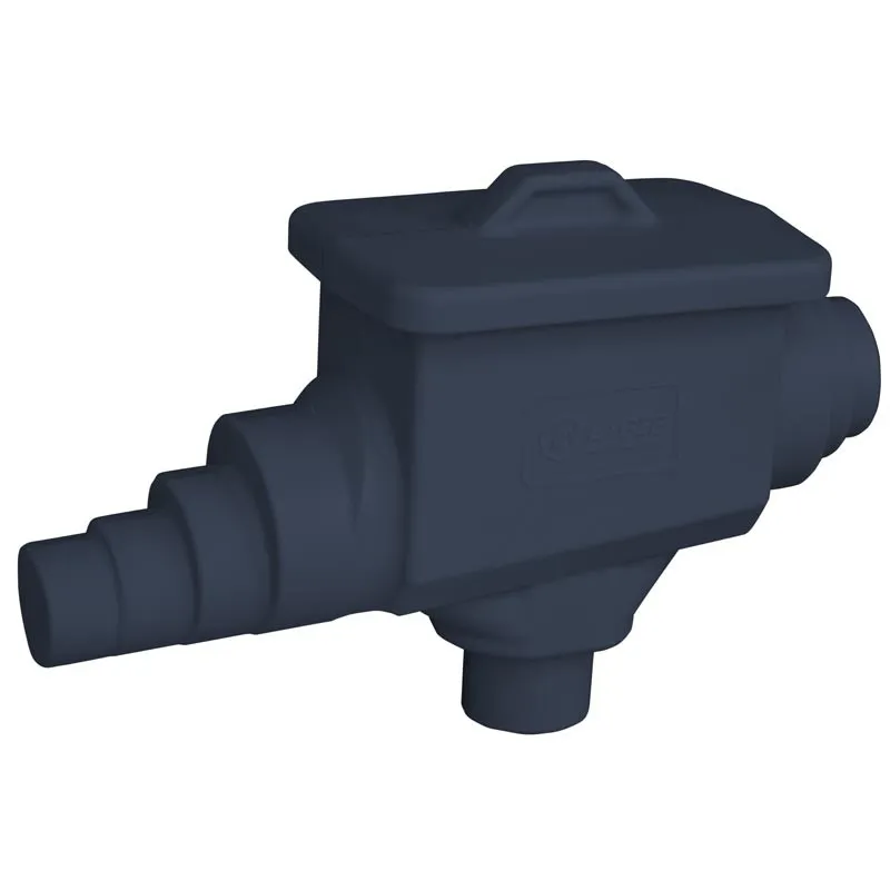 Dieser MAXI-Filter sammelt Rückstände in seinem Sammelbehälter, um eine Verschmutzung des in den Tanks gelagerten Wassers zu vermeiden. Er hat zwei Ausgänge: einen senkrechten Ausgang, der die gelagerten Flüssigkeiten in den Behälter leitet, und den zweiten Ausgang zur Netzrückführung über den Überlaufausgang, wenn der bzw. die Tanks voll sind.