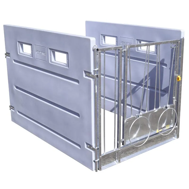 - Monoblock dichten Seitenwänden aus Kunststoff, Stifte inbegriffen, entsprechend den europäischen Vorschriften und den Empfehlungen der Landwirtschaftskammer so konzipiert, dass der Kontakt zwischen den Kälbern unterhalb von 900 mm über dem Boden vermieden wird.